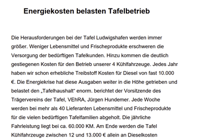 Mit der Lebensmittelausgabe helfen wir, dass in den Familien wieder gekocht wird, eine Gemeinschaft beim Essen entsteht und damit ein wichtiges Stück Lebensqualität gewonnen wird.